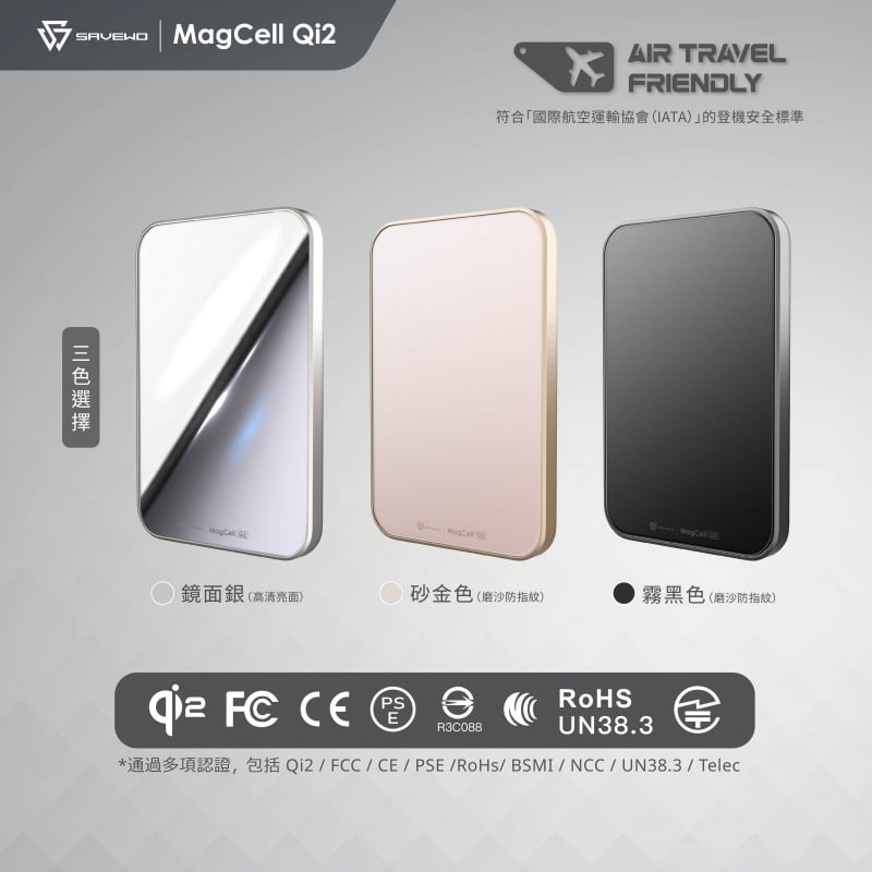 SAVEWO一直以來都持續創新,挑戰難度,為用家提供最好的產品。我們於美國CES2025公佈了全新開發的 MagCell Qi2 MC511Q2,以世界最小最薄*WPC Qi2官方認證(QI-23671),厚度僅有8mm,輕巧便攜,強大性能,高貴材質,成功脫穎而出,受到各國訪客關注。同時開發的姊妹型號MC511QF,更取得Apple Mfi 認證,在完全不增加體積的情況下,内置FindMy定位功能,突破不可能!