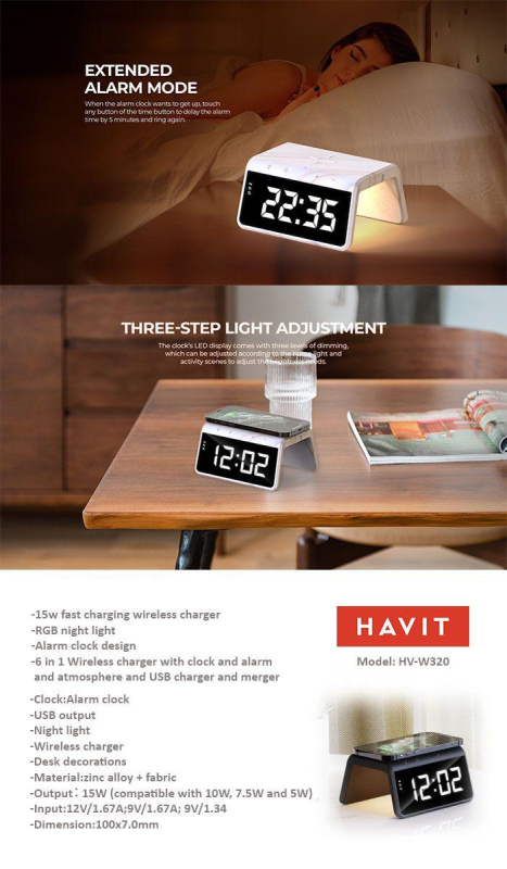 Havit w320 6-IN-1 鬧鐘無線充電架