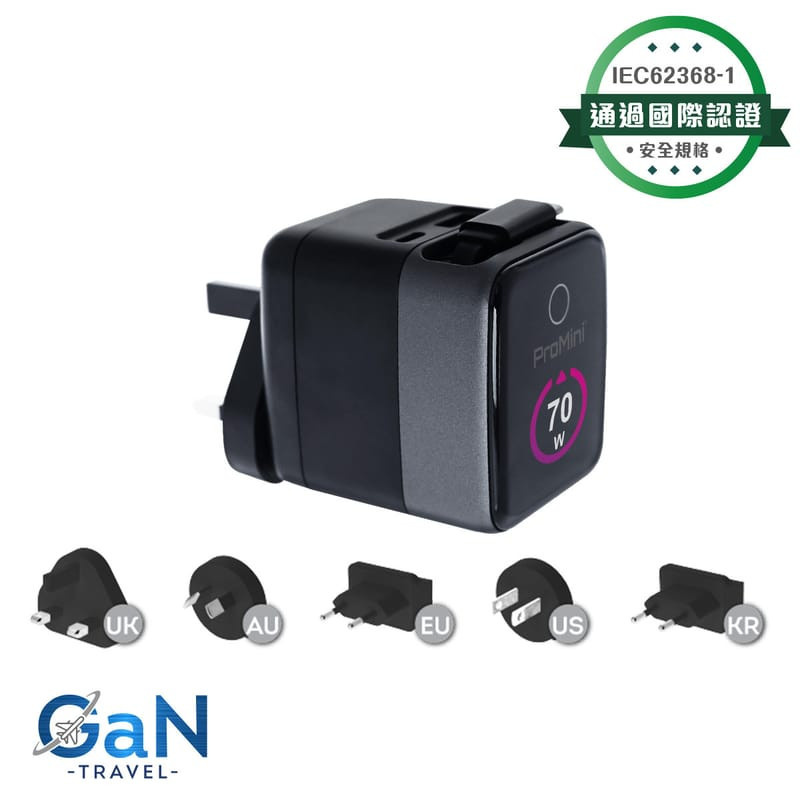 Magic-Pro ProMini GTC70P UI顯示PD3.0 GaN 70W旅行快速充電器