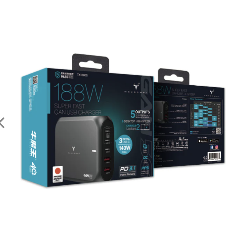 - 嶄新 GaN 新一代充電技術,更快、更輕巧、更省電,專為高端筆記本電腦及 5G 手機高速充電而設
