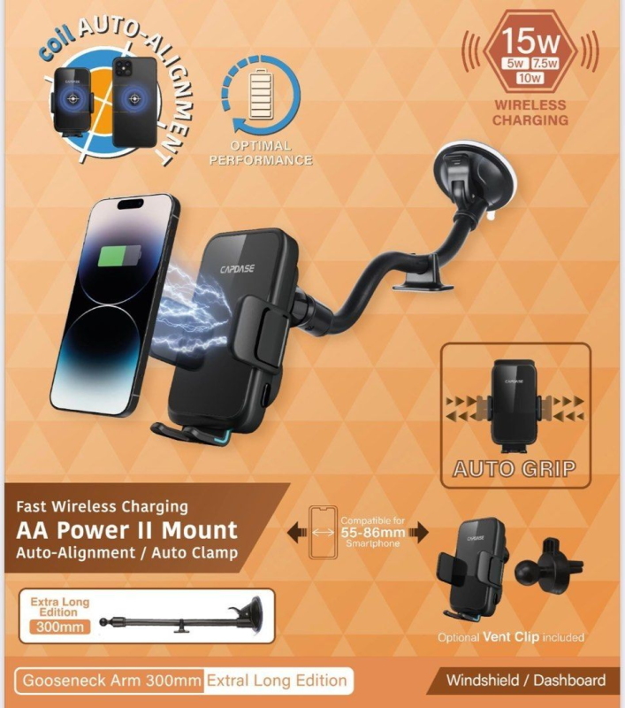 智能夾鎖定系統,採用線圈感應器設計,能自動感應並調整位置,汽車引擎啟動時夾具自動打開,且可通過頂部感應按鈕輕鬆釋放。