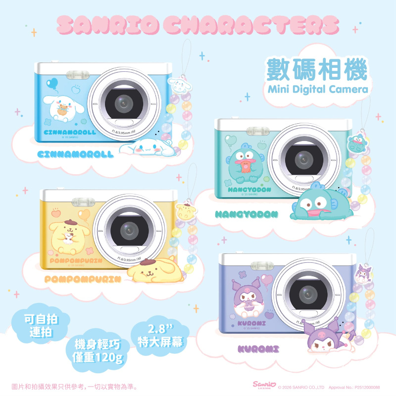 Sanrio Characters 數碼相機設有四位主角:Kurumi , Cinnamoroll , Pompompurin , HANGYODON!