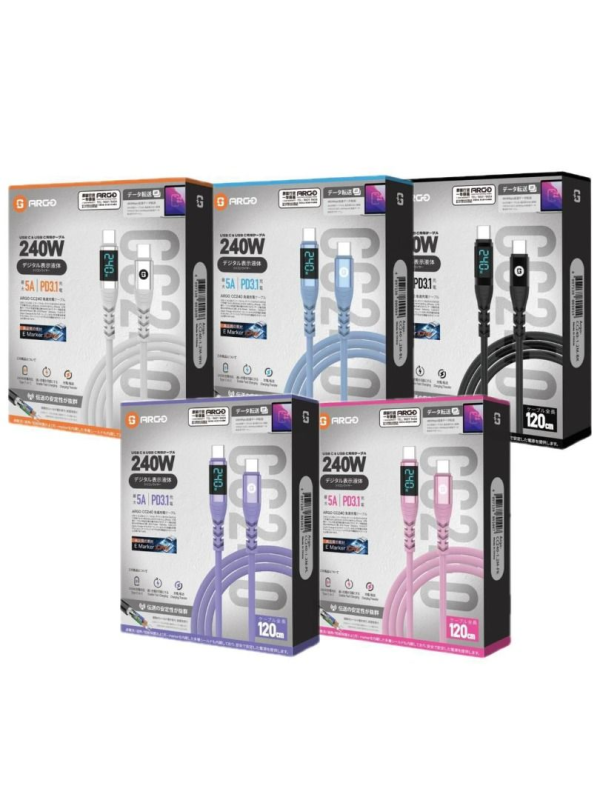 ARGO 240W「數顯純充之王」超軟神線|240W 快充 × LED 即時功率顯示 × 超柔軟矽膠線身
